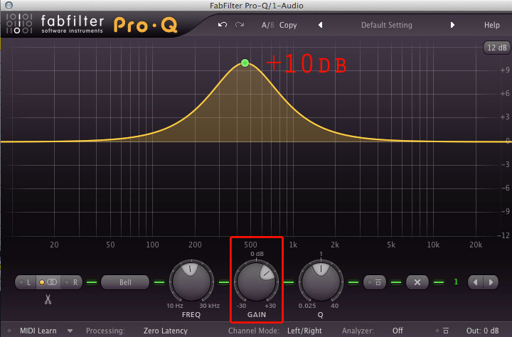- Increase the Gain +10db on a given frequency band. (see image 1)